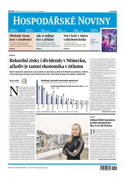 Hospodářské noviny přinášejí od pondělí do pátku aktuální zpravodajství se silnými analytickými prvky a komentáři. Ze všech českých deníků dávají největší prostor informacím z české i světové ekonomiky.